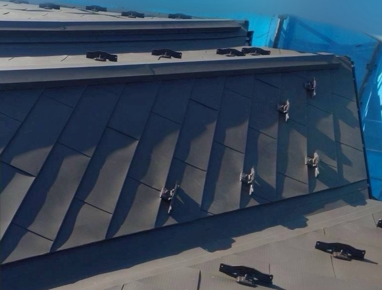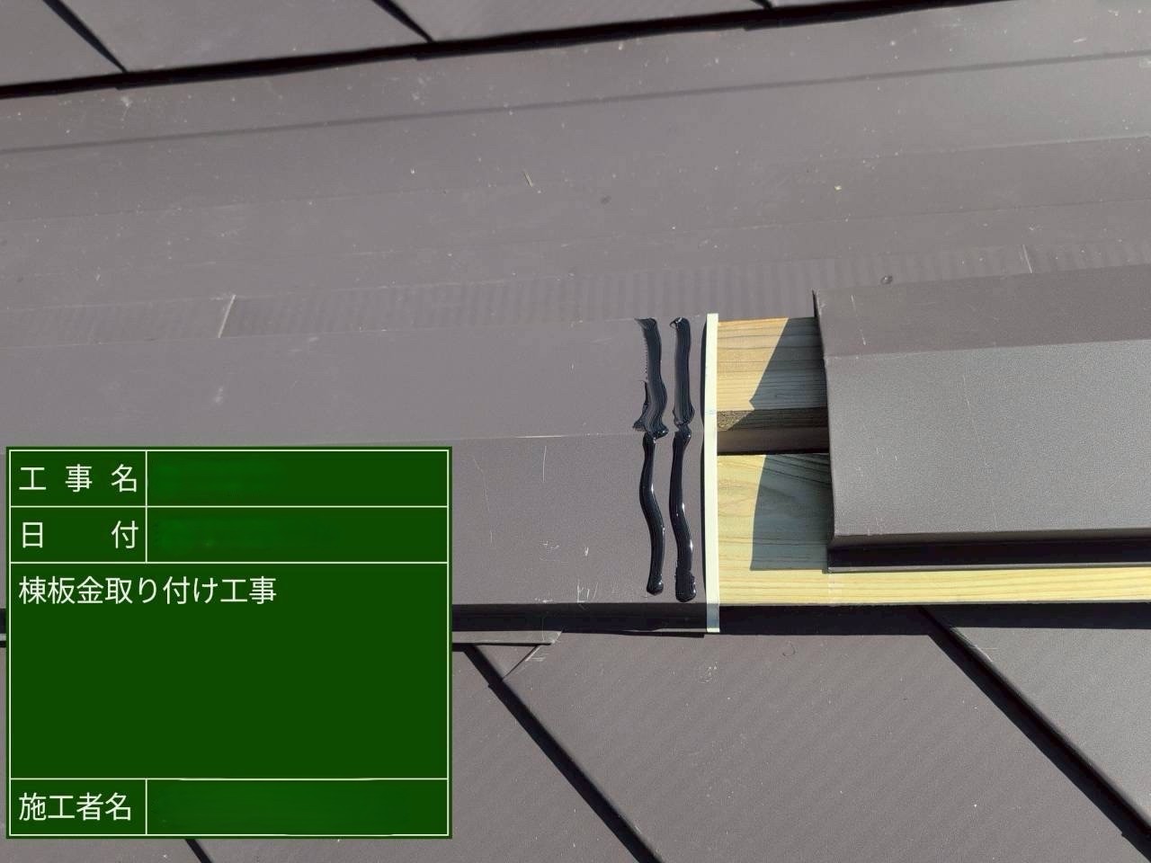 棟板金を取り付けています。