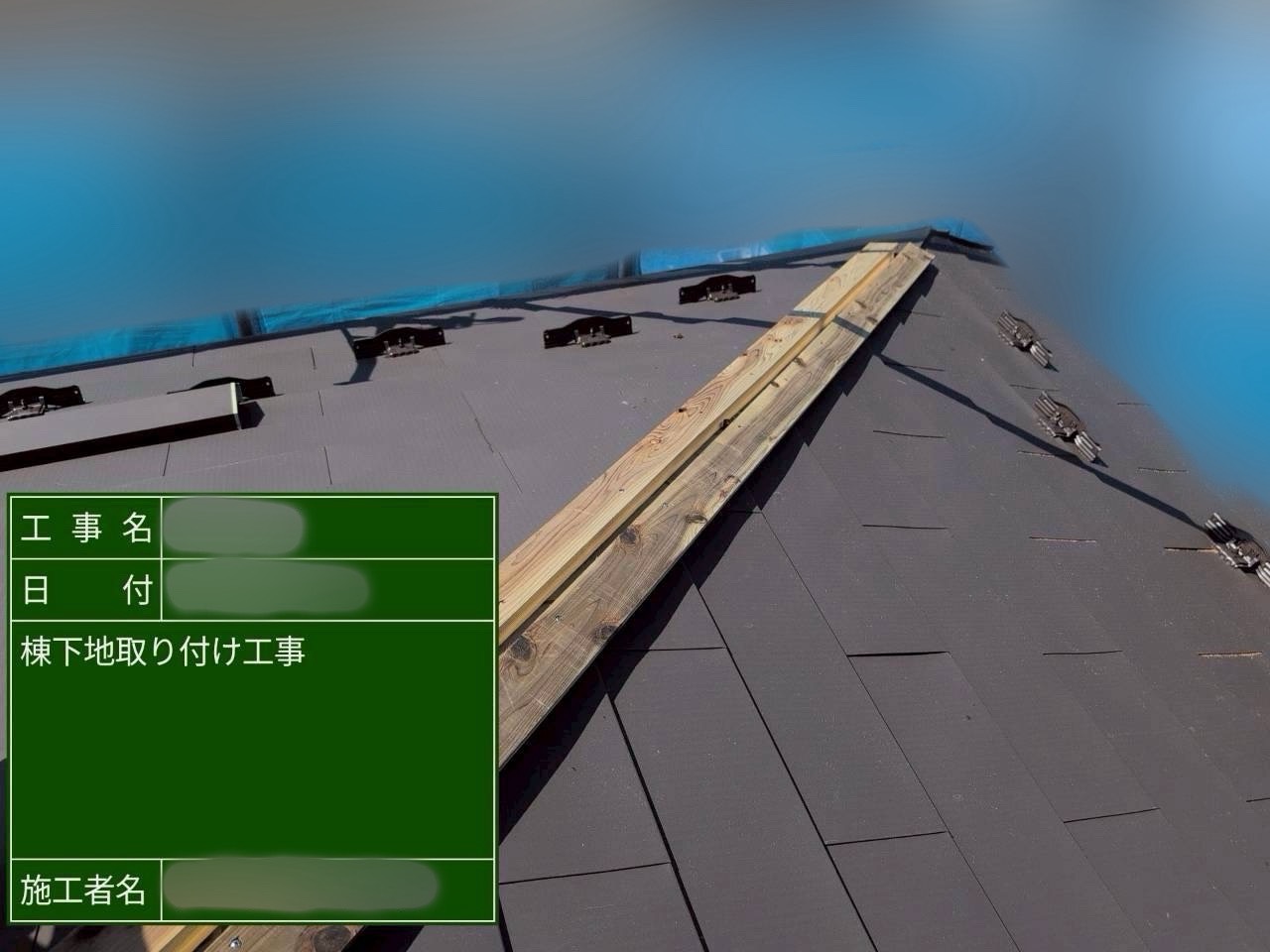 棟木下地を取り付けています。