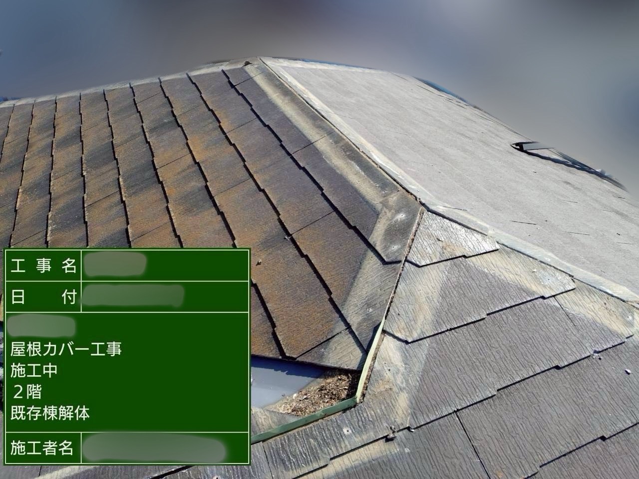 屋根葺き替え工法により新築のように綺麗になりました。