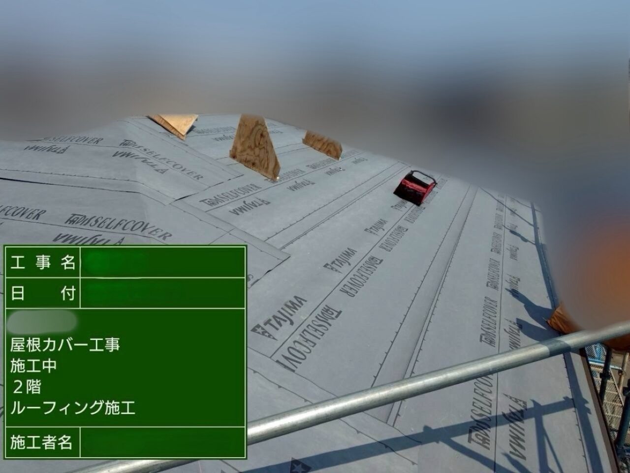 防水シートを貼っています。