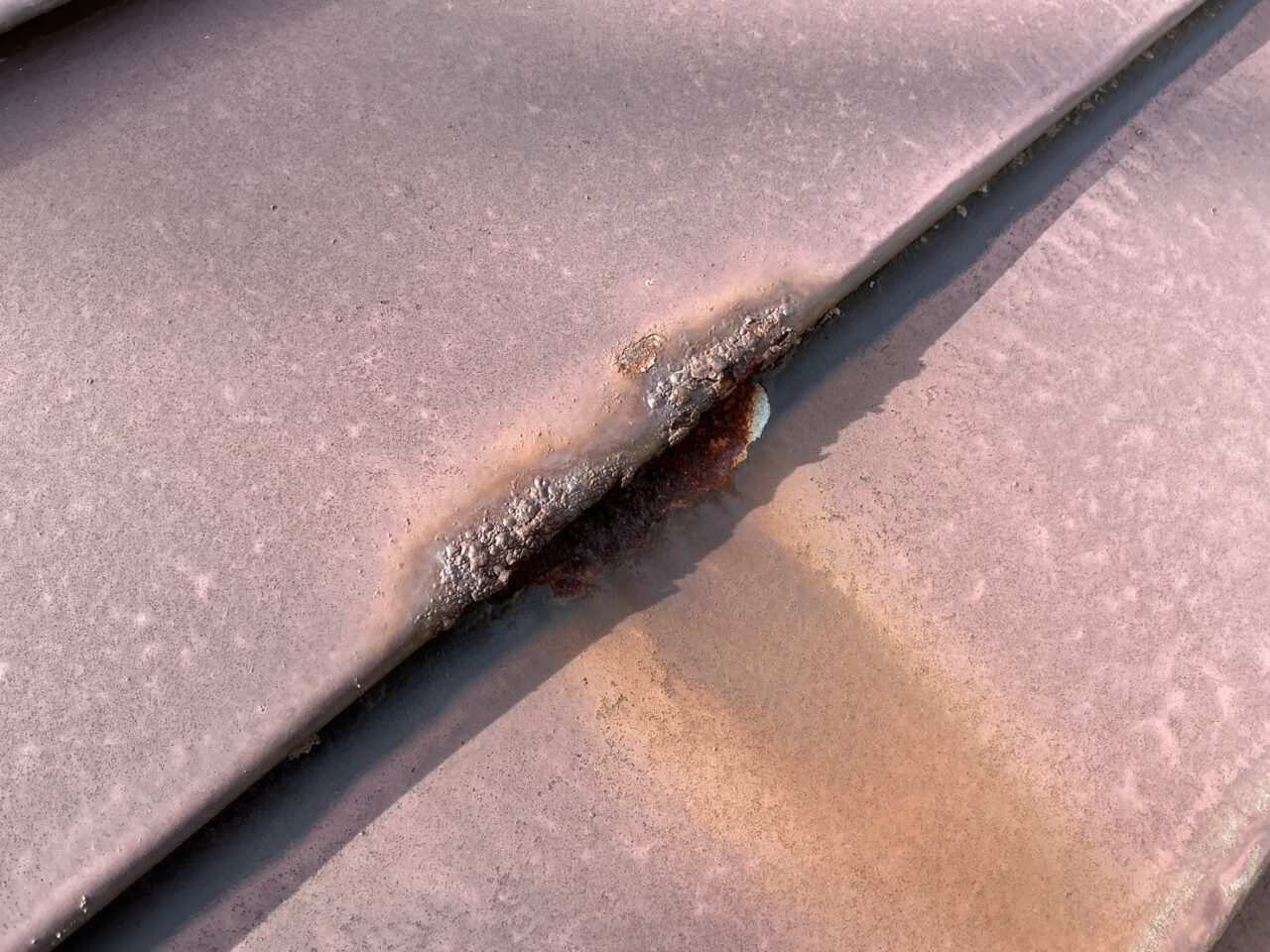 紫外線や風雨の影響により退色し、防水機能が低下している状態です。