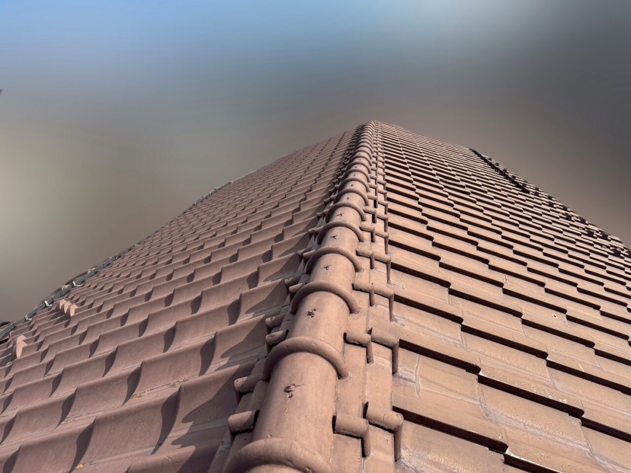 屋根 瓦のひび割れが見られます。